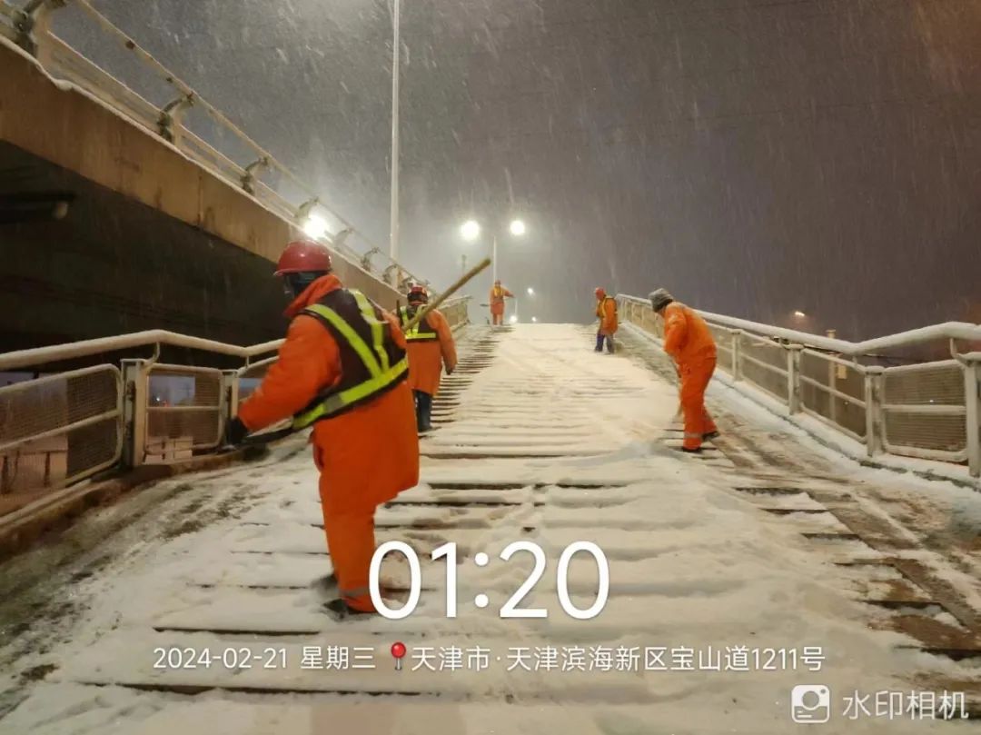 2月21日,面對(duì)突如其來的寒潮降溫和大到暴雪,泰達(dá)環(huán)衛(wèi)、輕紡環(huán)衛(wèi)公司以雪為令,迅速啟動(dòng)應(yīng)急預(yù)案,開啟響應(yīng)機(jī)制,全力以赴清雪除冰,確保道路暢通和市民安全出行。