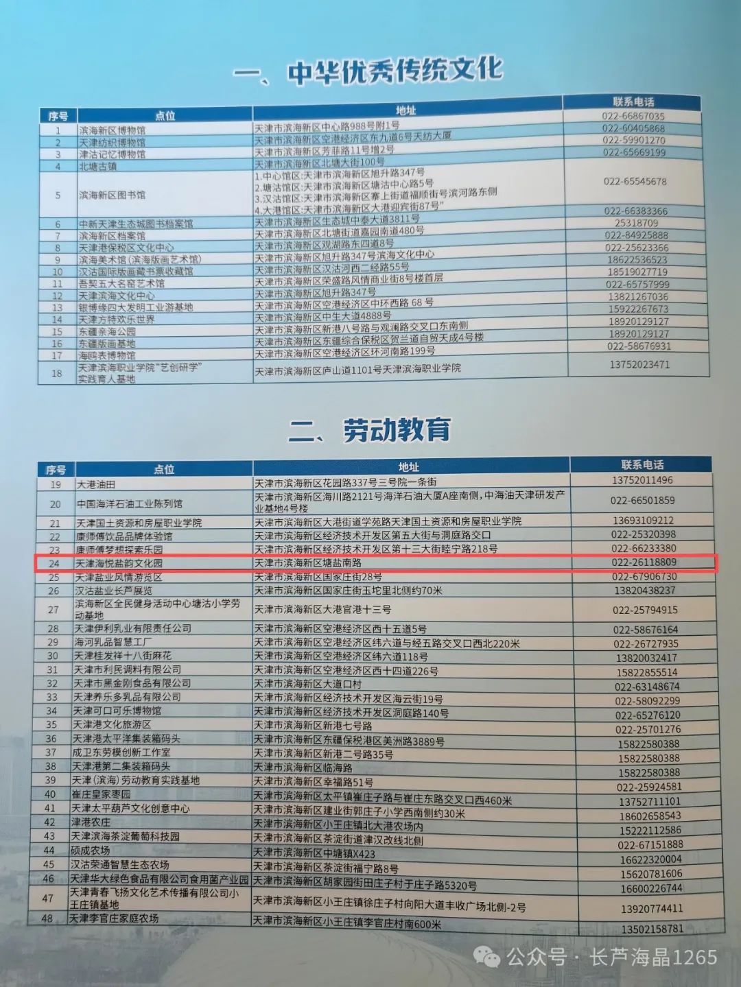 海悅鹽韻文化園入選濱海新區中小學實踐資源名錄(第一批)