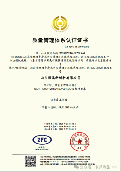 近日,山東新材料公司通過上下不懈努力,取得了國際通用的環境管理體系認證證書、質量管理體系認證證書和職業安全健康管理體系認證證書,標志著該公司在參與全球供應鏈精細化、標準化管理方面實現了質的飛躍,也是該公司不斷提升企業核心競爭力、實現高質量發展的重要體現。